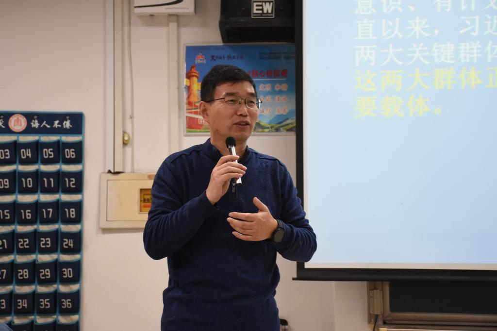11月17日下午,成人短视频 于综合楼306教室成功举办2021—2022学年“青马工程”培训讲座,本次讲座邀请金刚教授出席并担任主讲人。讲座由成人短视频 2021级辅导员刘贤贤主持,学生会主席团、学生会各部门负责人以及2020级、2021级各班班长、团支书参加本次讲座。