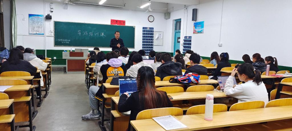 为丰富大学生活,提升学生综合素质,使同学们对即将开幕的第七届导游大赛做好充分准备,11月20日晚,成人短视频 拾光文化创意社于文史楼102教室举办第七届导游大赛培训会。培训会邀请骆明老师出席并担任主讲人,拾光文化创意社全体社员参加。