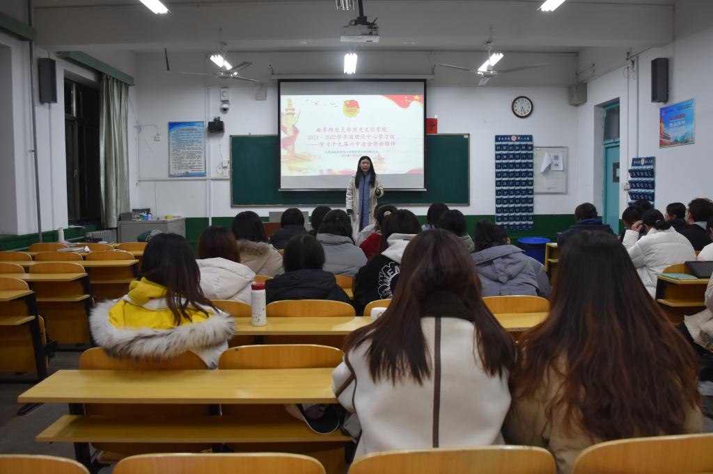 11月25日下午,成人短视频 团委理论中心学习组于文史楼102教室召开第三次理论学习——学习十九届六中全会讲话精神会议。会议由成人短视频 团委副书记石洋菁苡主持,成人短视频 各班团支书参加会议。