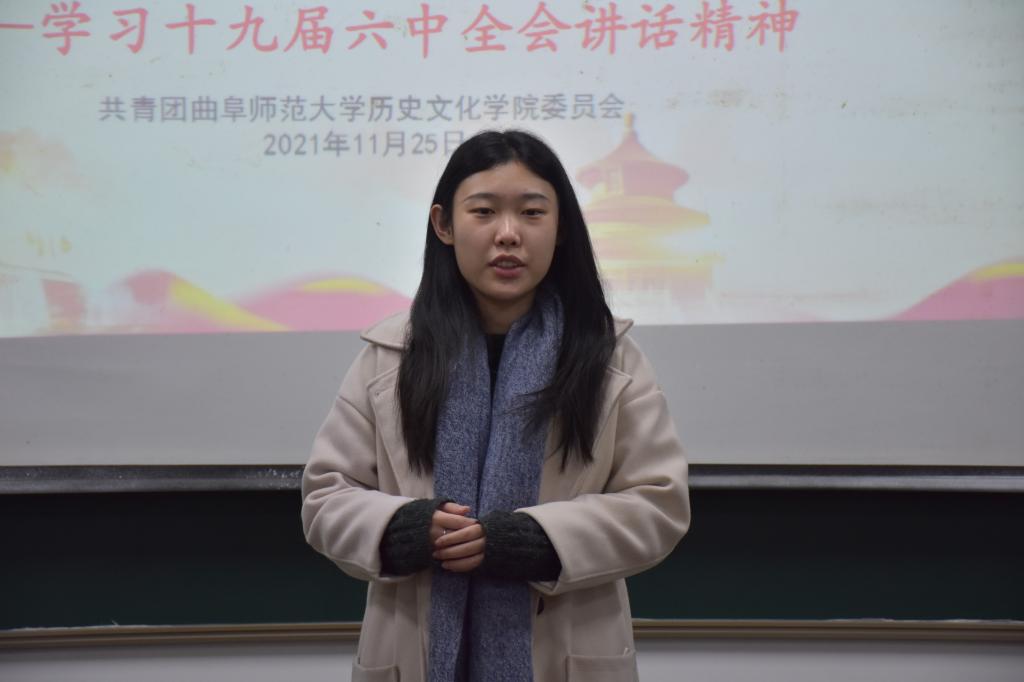 学习十九届六中全会讲话精神会议的举办,使各班团支书对党的十九届六中全会讲话精神有了深入的了解,便于各班组织学习党的十九届六中全会精神,为十九届六中全会精神的传达创造了条件,并以此激励同学们积极学习党的领导精神,激励同学们奋发向上,为祖国的建设贡献自己的一份力量。