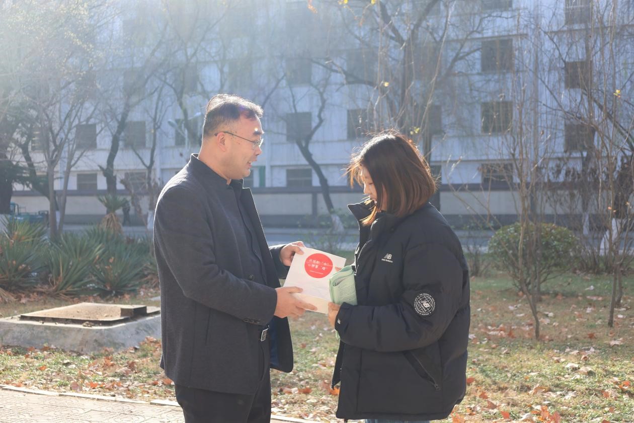 12月20日上午,成人短视频 开展了为考研学子送温暖活动,助力考研。成人短视频 党委副书记王建阳带领全体辅导员为全院考研学子送上温暖。