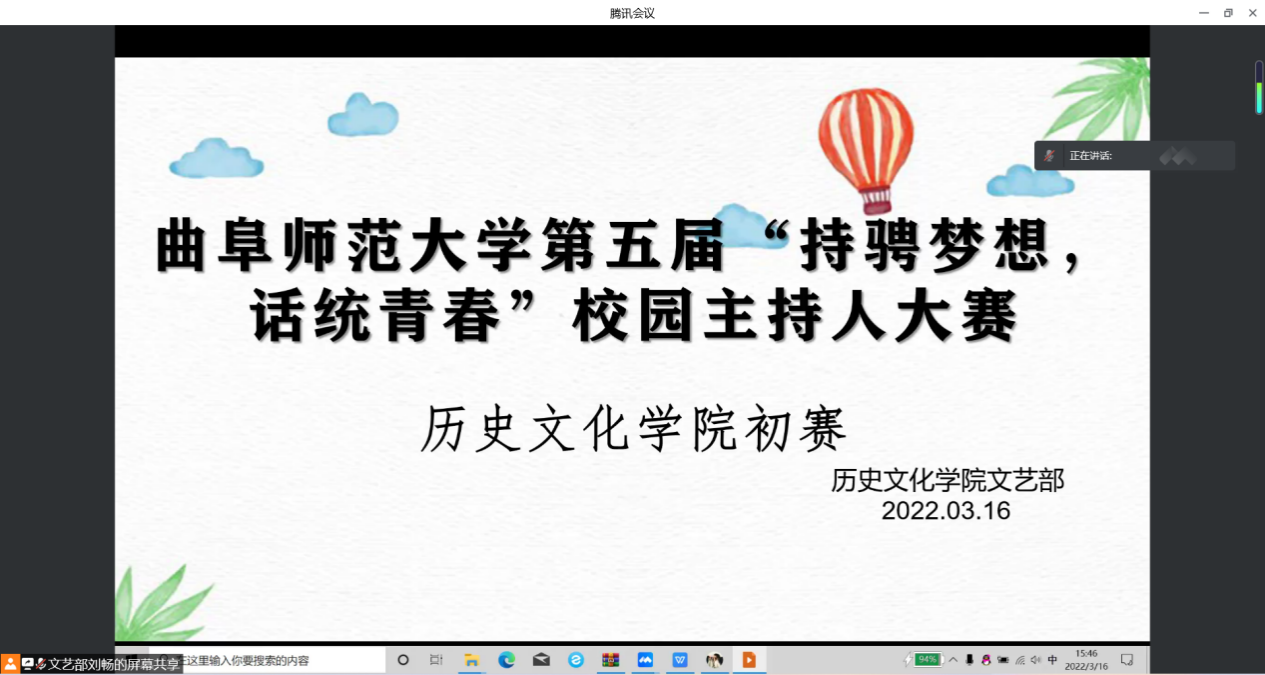 为丰富成人短视频 学子课余生活内容、提升成人短视频 学子自我谈吐能力,3月16日,成人短视频 于线上举办第五届“持骋梦想,话统青春”校园主持人大赛初赛。成人短视频 团委副书记王红宇、吕依琳以及学生会主席兰鸽、副主席刘吉、窦鲁豫、宫志伟、宿宸伟、大学生传统礼仪研修中心主任林欣、第四届校园主持人大赛冠军王子涵出席比赛并担任评委。