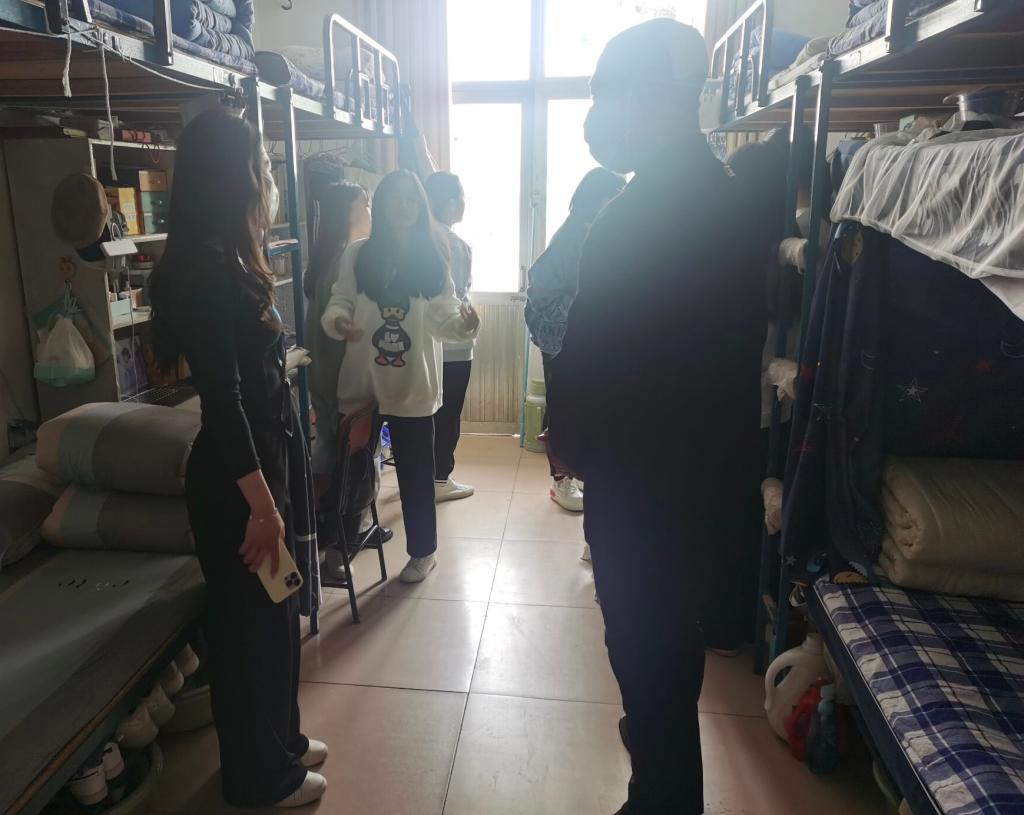 为进一步加强宿舍安全管理,确保宿舍安全稳定,5月6日上午,成人短视频 刘贤贤老师、刘润欣老师、董经老师走进学生宿舍,开展安全专项大检查,对学生宿舍安全进行全面检查。