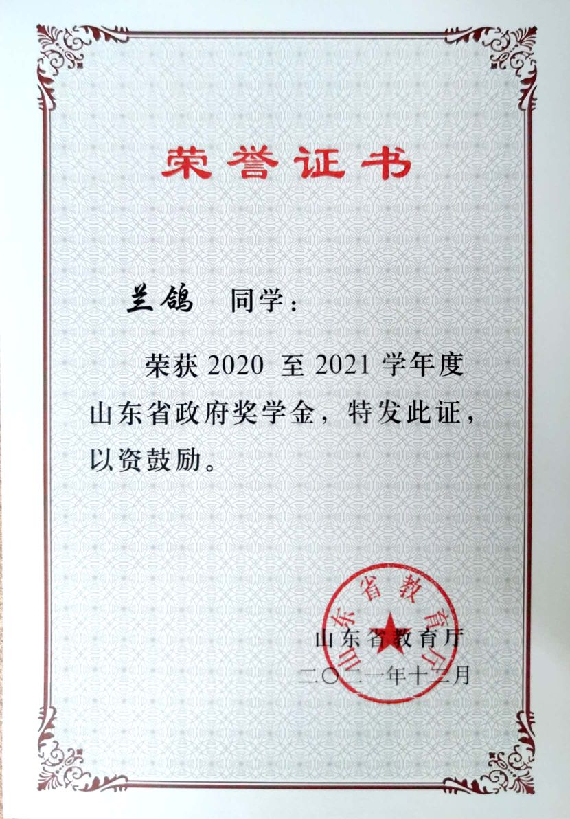 近日,国家奖学金和山东省政府奖学金的评选落下帷幕。按照客观、公平、公正的原则,经院校两级严格选拔、评审,成人短视频 共四名学子被推选上报。最终,国家奖学金、山东省政府奖学金评选结果公布,成人短视频 王红宇、张潇曰荣获2020至2021学年度本科生国家奖学金,兰鸽、段茹艺荣获2022至2021学年度山东省政府奖学金。