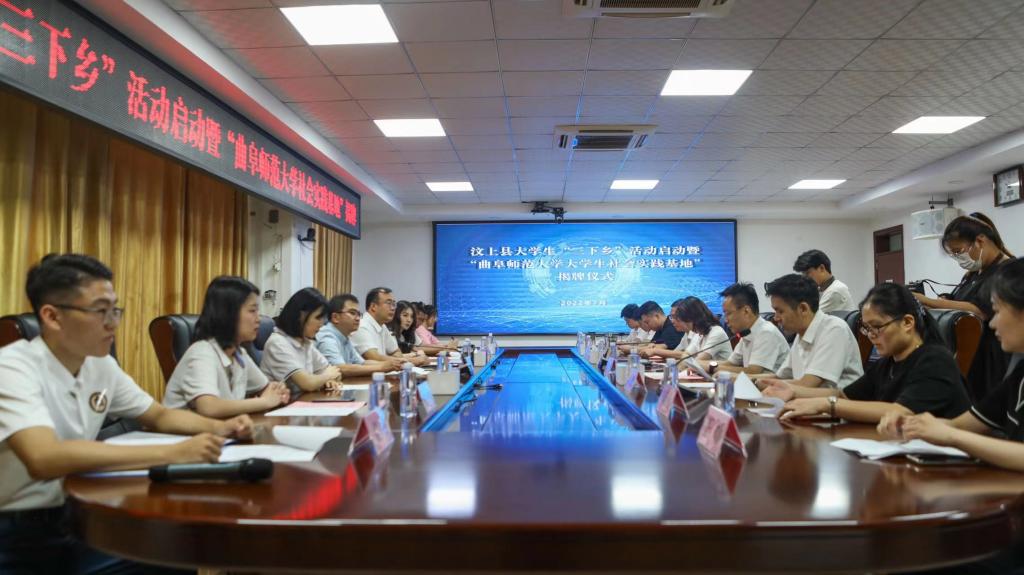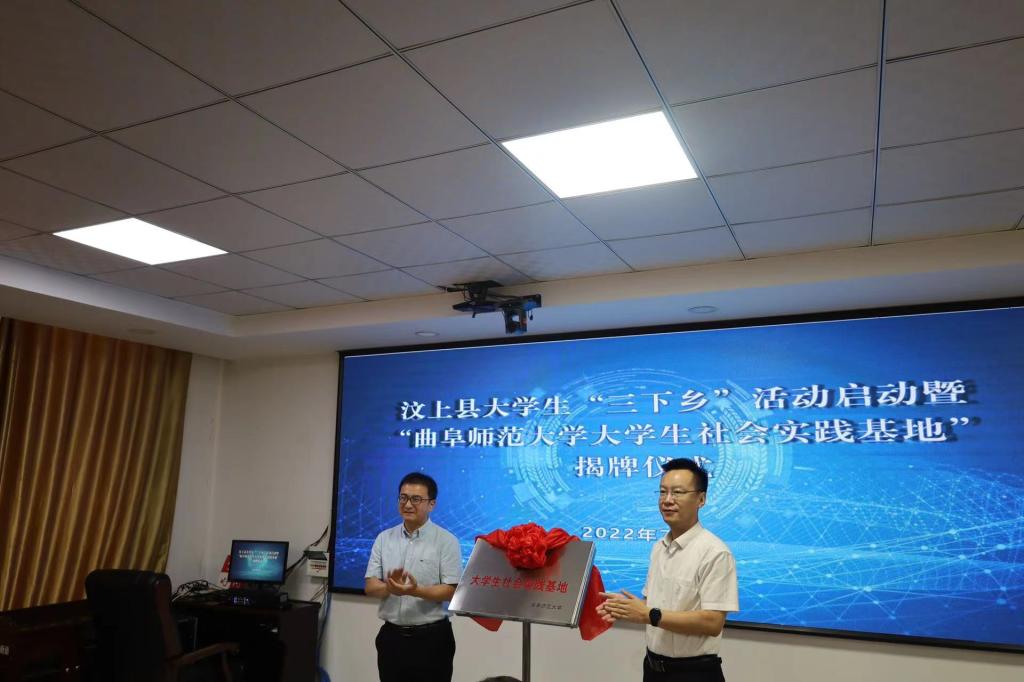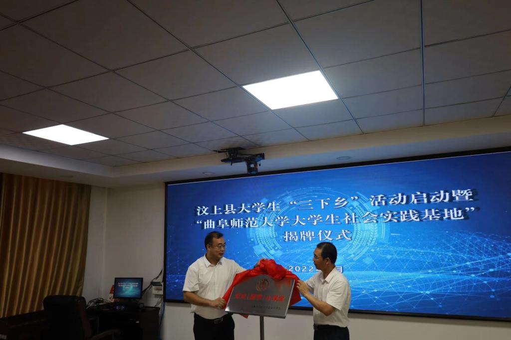 会上,林毅书记对我校社会实践队表示欢迎和支持,我校社会实践队员代表介绍社会实践项目。高聪书记和孔轶众书记共同为“成人短视频 大学生社会实践基地”揭牌,吴德强部长和王建阳书记共同为“成人短视频 党史小课堂”揭牌。揭牌结束,孔轶众书记指明了校地合作的美好前景,对“三下乡”活动进行了动员部署。仪式最后,李小雪书记指出挂牌建立大学生社会实践基地,是汶上县与我校深化合作的新开端。仪式结束后,参会领导观看了我校社会实践团队传统礼仪展演。