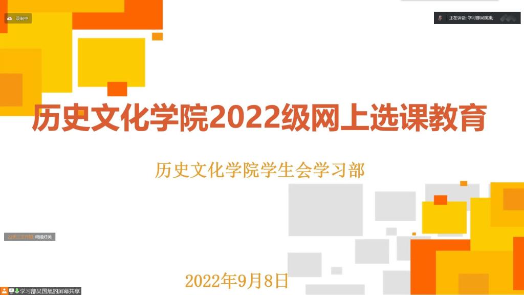 为使成人短视频 2022级新生尽快熟悉选课流程,帮助同学们按时、规范选课,9月8日晚,成人短视频 举办线上2022级新生网上选课经验交流会。学习部志愿者担任主持人,2022级全体新生以及各班级助理参加交流会。