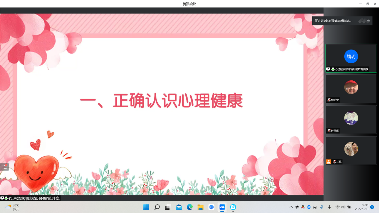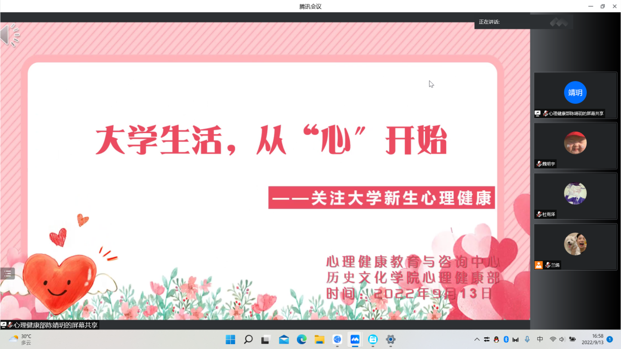 为引导新生培养理性平和健康的心态,9月13日下午,成人短视频 于线上开展心理健康主题班会。本次会议由成人短视频 心理健康部主持,成人短视频 22级新生参加。