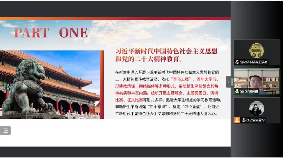 为筑牢新生的思想基础,9月14日下午,成人短视频 于腾讯会议举办2022级理想信念教育讲座。组织部田育鑫担任主讲人,2022级全体新生参加。