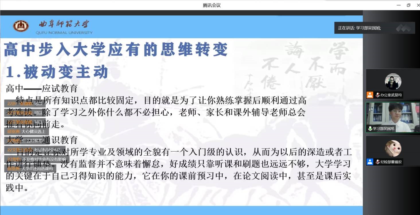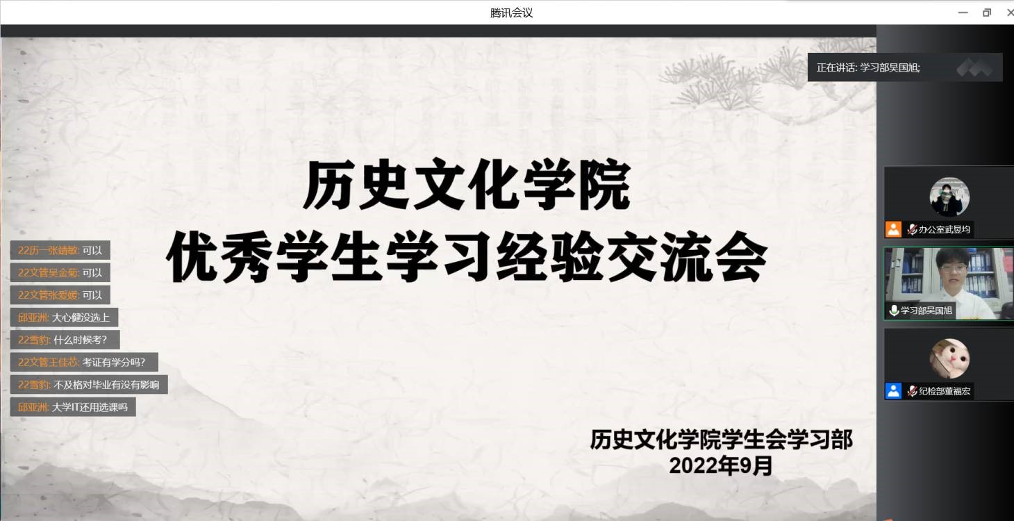 为引导2022级新生掌握科学有效的学习方法,9月15日,成人短视频 于腾讯会议举办学习经验交流会,学习部