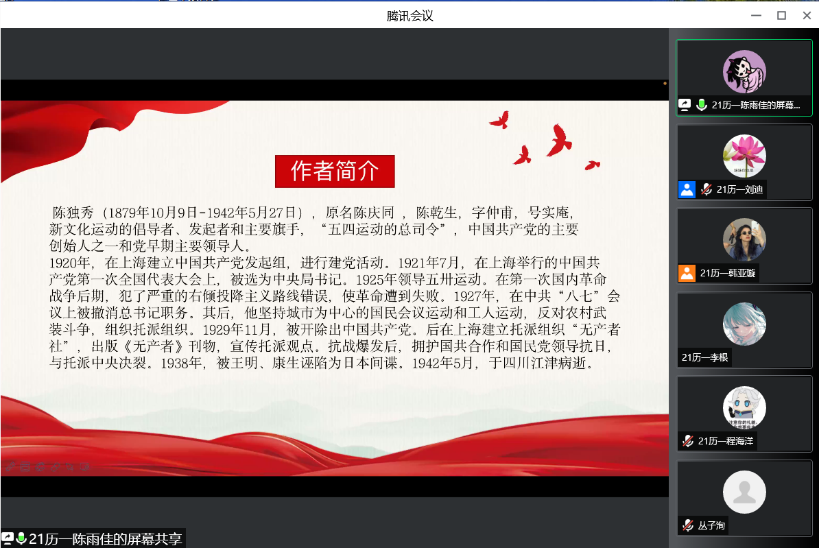 为深入开展党史学习教育,推动成人短视频 学子学深悟透百年党史,成人短视频 于6月4日晚举办读党史、悟初心读书会。本次读书会由张世慧老师指导,杜林欐同学主持。