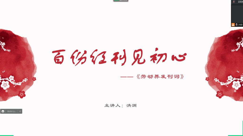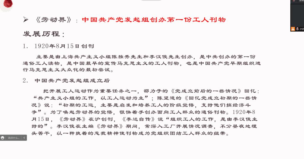 为加强学生对党史的了解,从党史中汲取精神力量,成人短视频 于9月11日晚举办读党史、悟初心读书会。本次读书会由张世慧老师指导,洪渊同学主持。