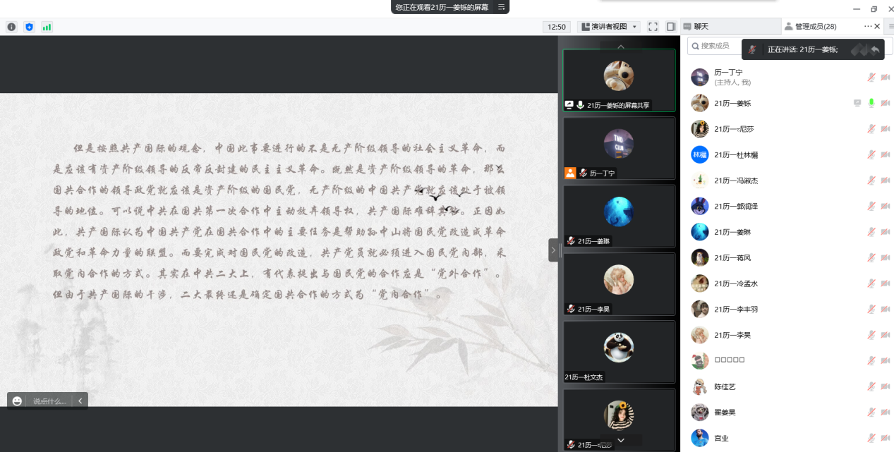 本次读书会的举办,促进成人短视频 学子与党史学习教育有机结合、引导成人短视频 学子在学史中明立身之理、主义之真、为学之道,弘扬党的历史、做到以史鉴今、资政育人。
