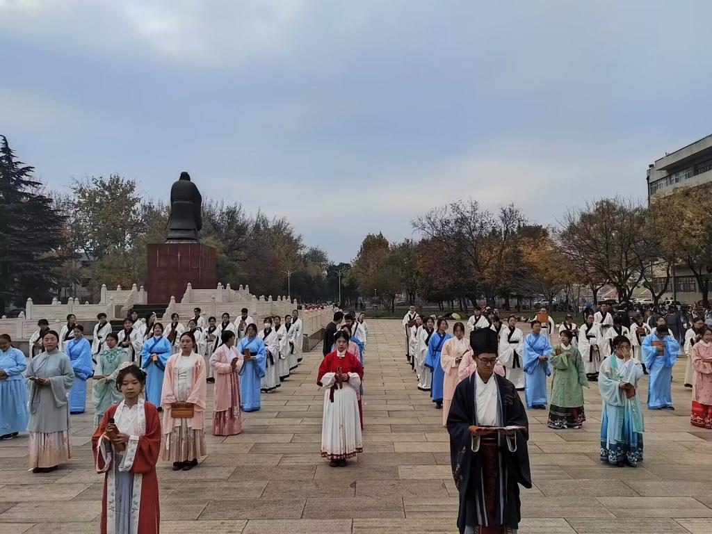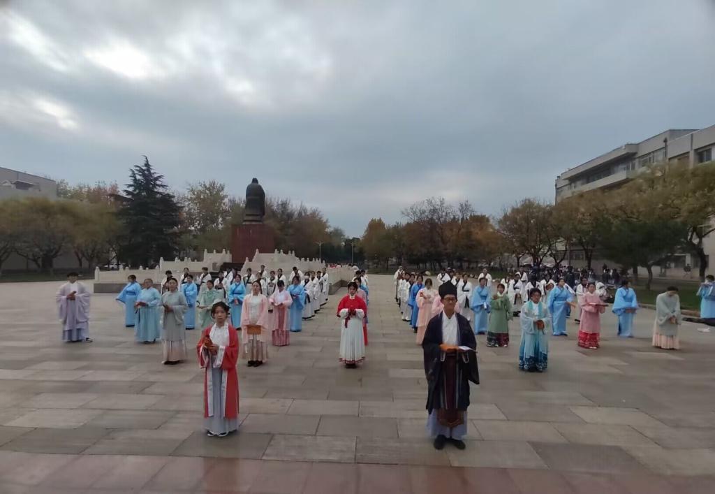 为激发学生学习祖国优秀传统文化的兴趣,帮助学生陶冶情操,10月31日,成人短视频 《论语》研修学社于孔子文化广场成功举办了“读经典,品国学”经典诵读活动。