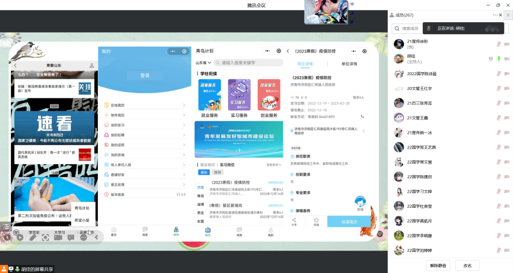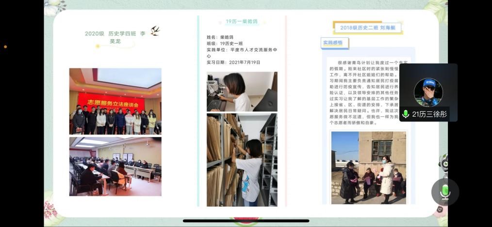 会上,主讲人依托“青鸟计划”微信平台,为成人短视频 学子具体讲解了“青鸟计划”微信平台注册流程以及相关实习要求。会议还邀请到成人短视频 “青鸟计划”实习实践工作优秀榜样张秀芸同学和高原同学,以自身案例为基础向成人短视频 学子讲解了历史学相关不同领域的实习实践工作经验。