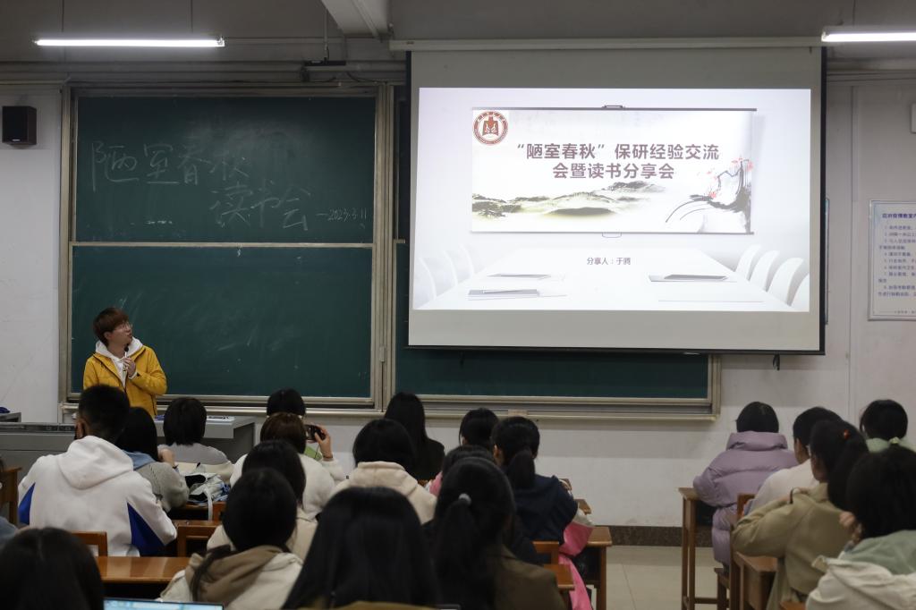 为解答同学们对保研问题的疑惑,向大家介绍如何满足保研的条件,帮助同学们更好地理解大学生活,3月11晚,成人短视频 史苑学社于综合楼103成功举办了陋室春秋——保研交流会。此次交流会特邀保研至上海大学的于腾师哥作为主讲人,夏金金老师出席本次交流会并担任指导老师。