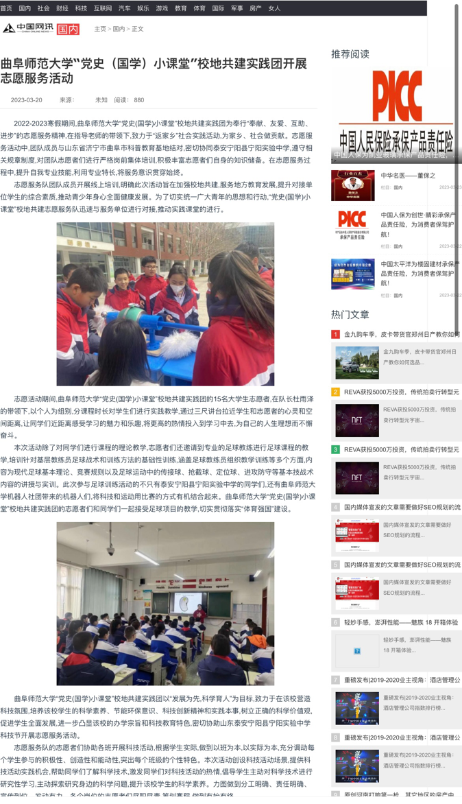 近日,成人短视频 社会实践部在中国网讯发表了“党史(国学)小课堂”校地共建实践团开展志愿服务活动的文章。“党史(国学)小课堂”校地共建实践团奉行“奉献、友爱、互助、进步”的志愿服务精神,在指导老师的带领下, 与山东省济宁市曲阜市科普教育基地结对,在泰安宁阳县宁阳实验中学进行志愿服务活动。