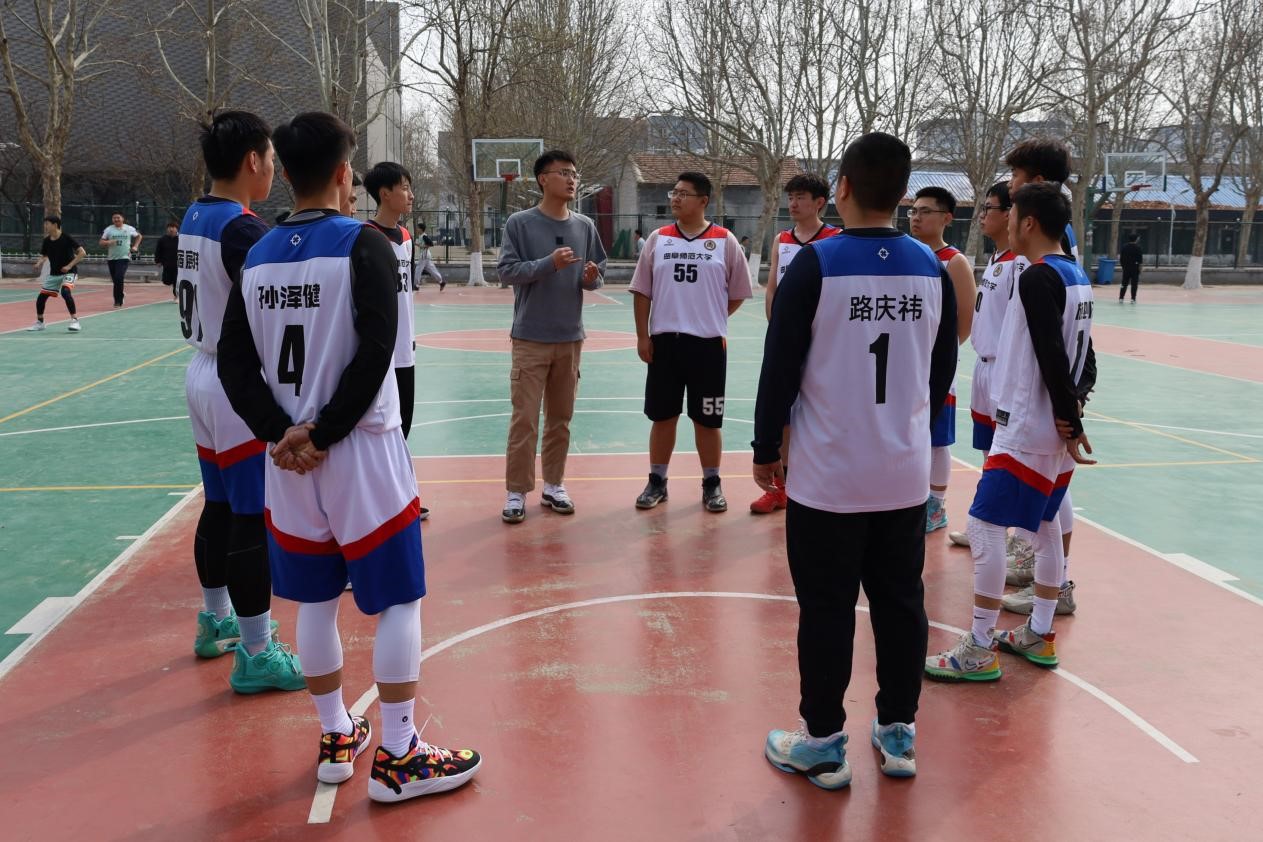 3月18日下午在校北篮球场,成人短视频 邀请体院专业教练对成人短视频 男子篮球队进行赛前热身指导。