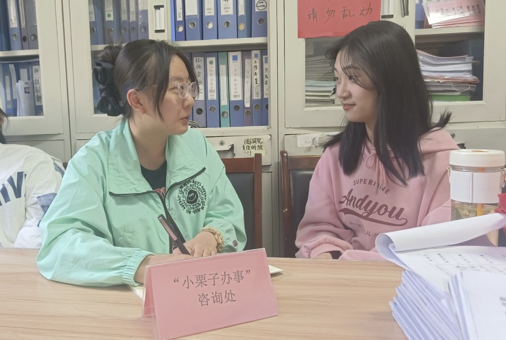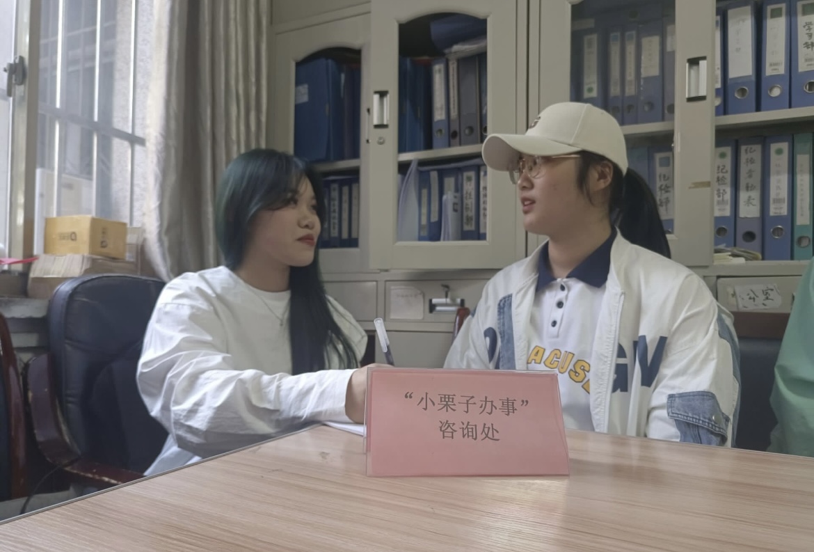 为更好服务同学,解答成人短视频 同学学习生活中遇到的问题,3月20日,成人短视频 于文史楼105办公室开设“小栗子办事”咨询处,由安全与权益部为成人短视频 同学答疑解惑。