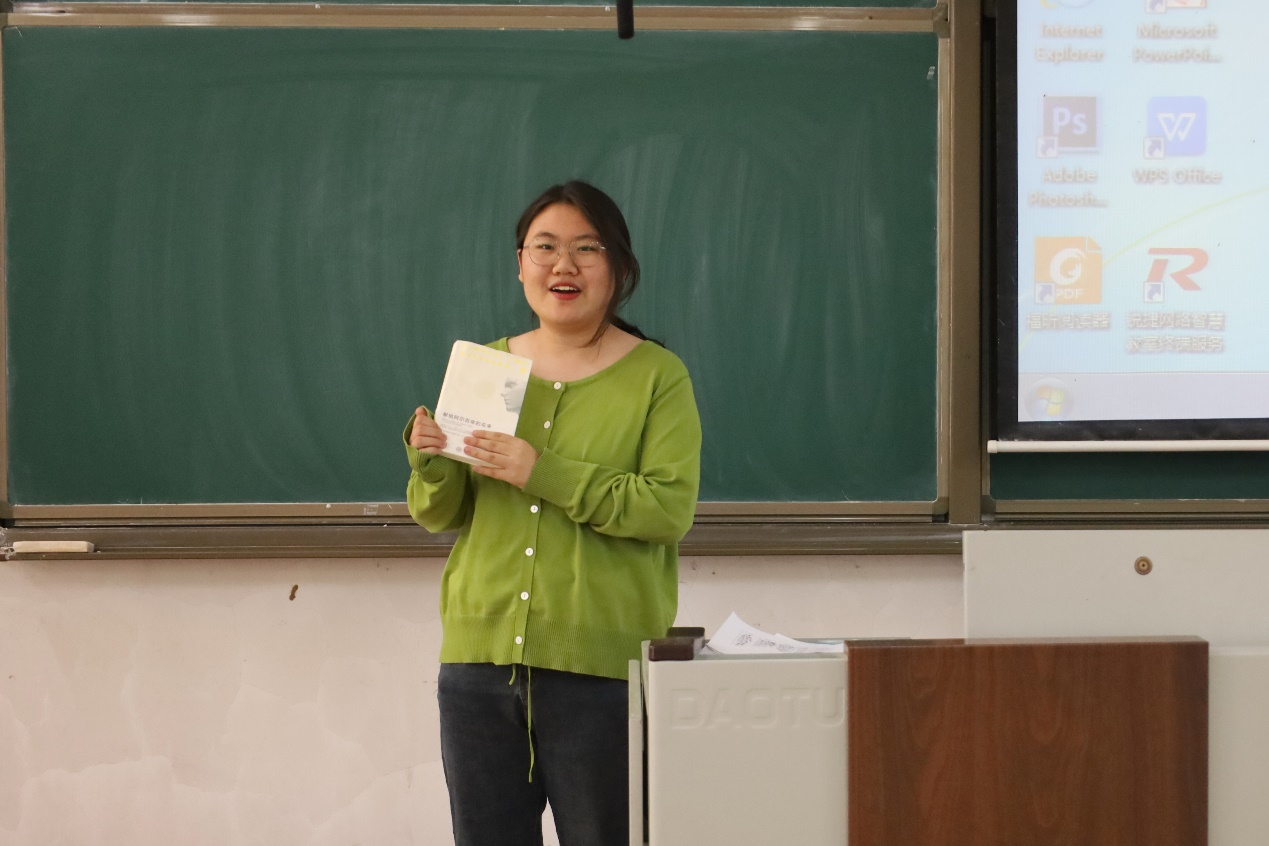“以书会友”活动通过线上和线下结合的方式进行。同学们通过线上投稿,推荐自己喜欢的书籍,分享自己的感悟。本次线下活动为同学们提供了一个现场交流的场地,首先,同学们以小组为单位自由交流、激烈讨论。然后,分享人上台向同学们介绍相关书籍的作者,内容,价值,读书心得等,引起大家的学习与思考。最后,在朗诵环节中,大家自由选择喜欢的片段进行展示。现场气氛热烈,至此本次活动圆满结束。