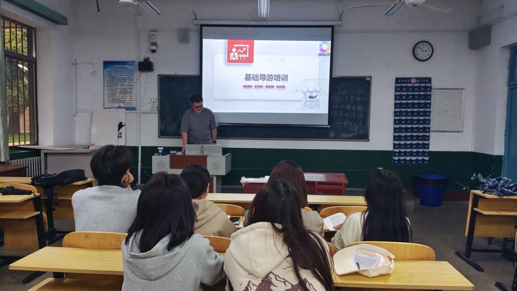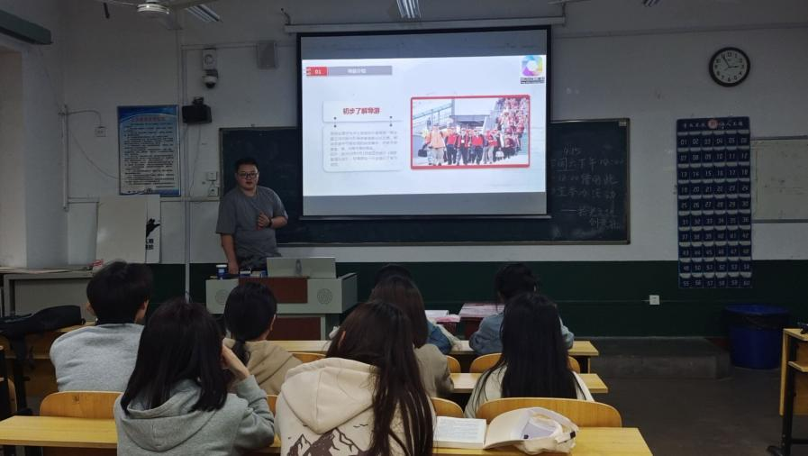 为丰富大学生活,使同学们为即将到来的导游大赛做好充分准备,4月15日下午15时,成人短视频 拾光文化创意社于文史楼102教室举办第八届导游大赛培训会。培训会由拾光文化创意社副社逄泽辉和社长邹雅琳担任主讲人,拾光文化创意社全体社员、导游爱好者及数名观众参加。