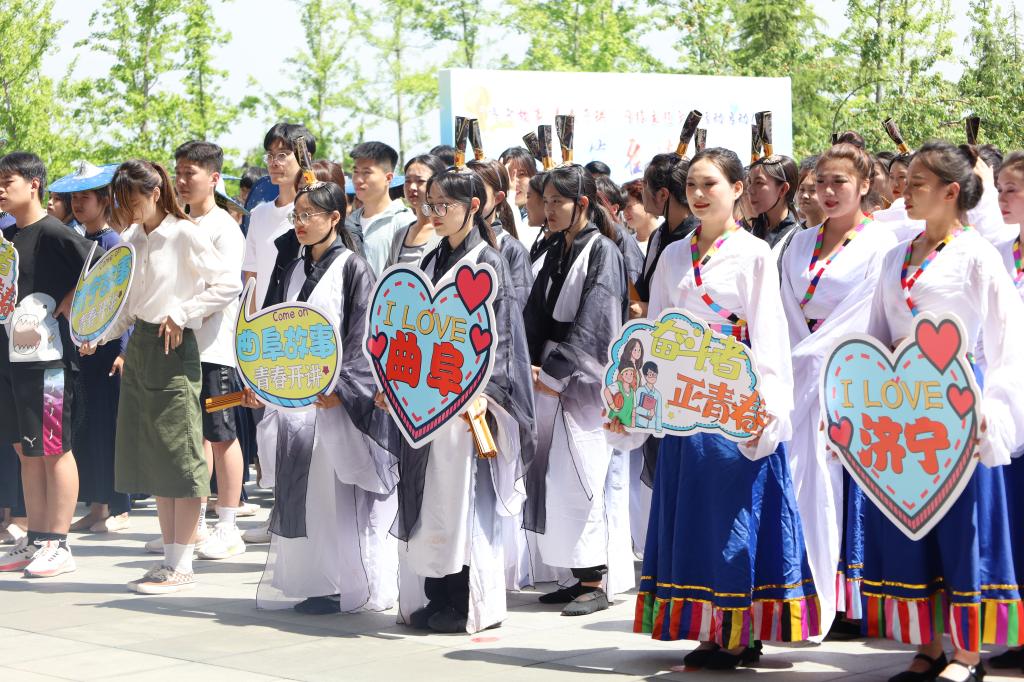 5月22日,成人短视频 、济宁学院、济宁医学院、济宁职业技术学院、山东理工职业学院等校的青年教师、学生代表等共约200人相聚于孔子博物馆南广场,参加由中共济宁市委网信办、共青团济宁市委举办的“济宁故事青春开讲”网络主题宣传活动的启动仪式。我校团委副书记李玲出席了本次活动并代表学校致辞,成人短视频 书简舞团队全体成员参加。