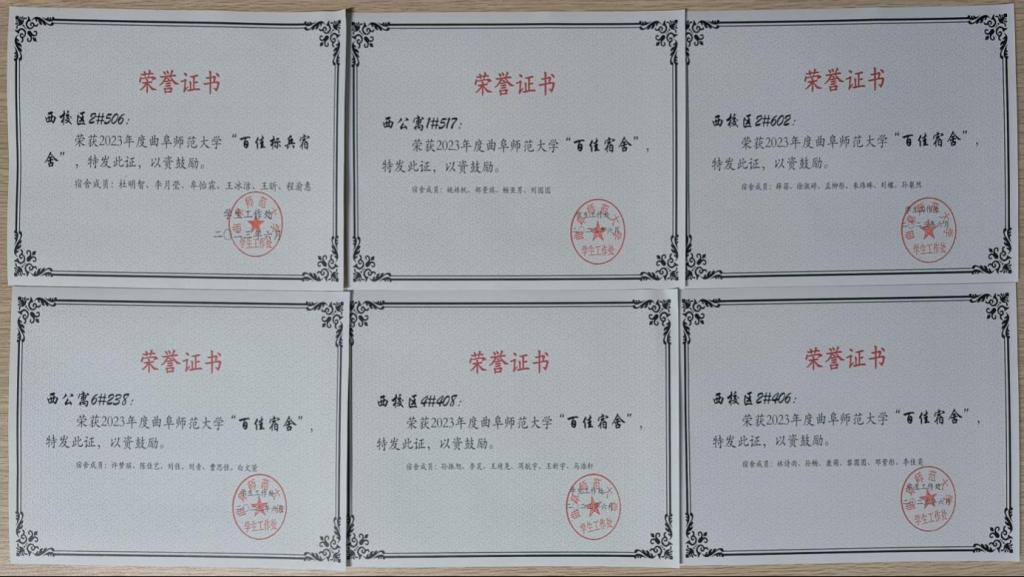 经同学们自主报名,成人短视频 初级选拔推荐,校级宣传评比等综合审查,成人短视频 西校区2号楼506宿舍、西校区2号楼406宿舍、西公寓6号楼238宿舍、西校区2号楼602宿舍、西校区4号楼408宿舍、西公寓1号楼517宿舍成功入选“百佳宿舍”名单,其中,西校区2号楼506宿舍表现突出,荣获第四名佳绩,取得了曲阜校区“百佳标兵宿舍”称号。