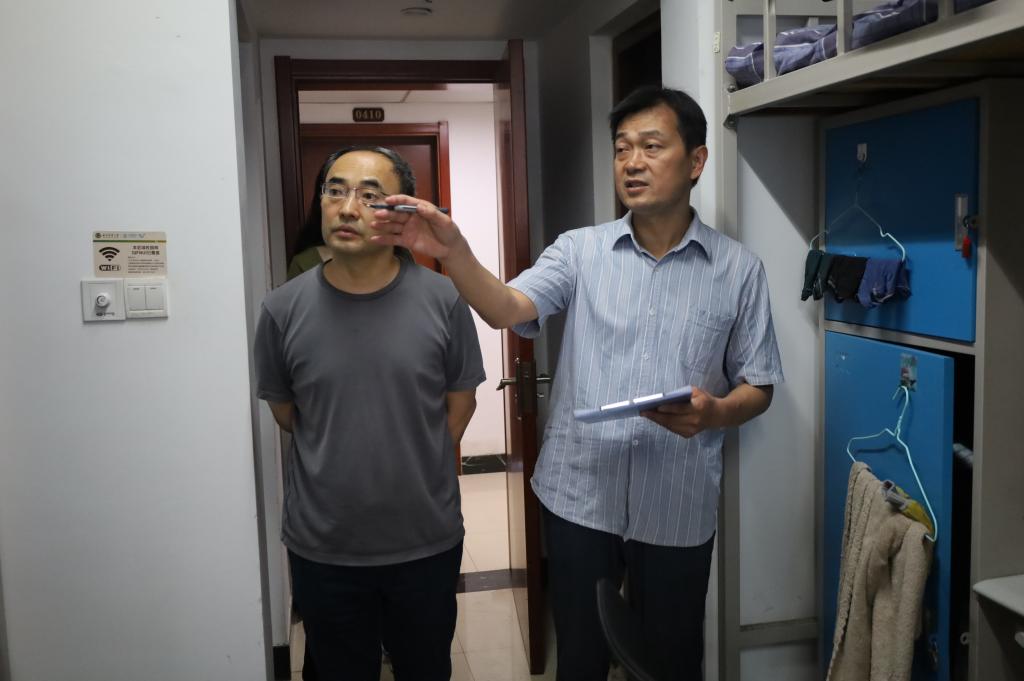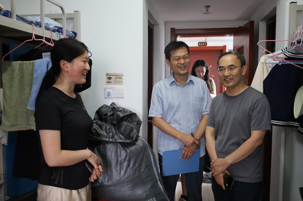 为加强毕业生文明离校教育,增强成人短视频 学生的安全和环境卫生管理意识,6月19日,成人短视频 党委书记姜开勇、院长吴佩林、党委副书记王建阳、团委书记刘贤贤及毕业生辅导员走进毕业生宿舍,进行宿舍走访。