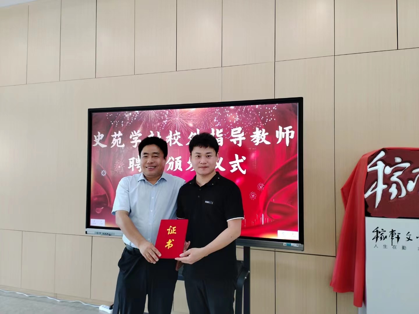 双方以“访企拓岗”促就业活动为契机,围绕学生培养、科研创新、社会实践等方面的具体合作需求和方向展开深入交流。 随后,王建阳与稼轩文学院主任周兵共同为大学生社会实践基地揭牌;王京传为稼轩文学院执行副院长赵怀宝颁发史苑学社校外指导教师聘书。