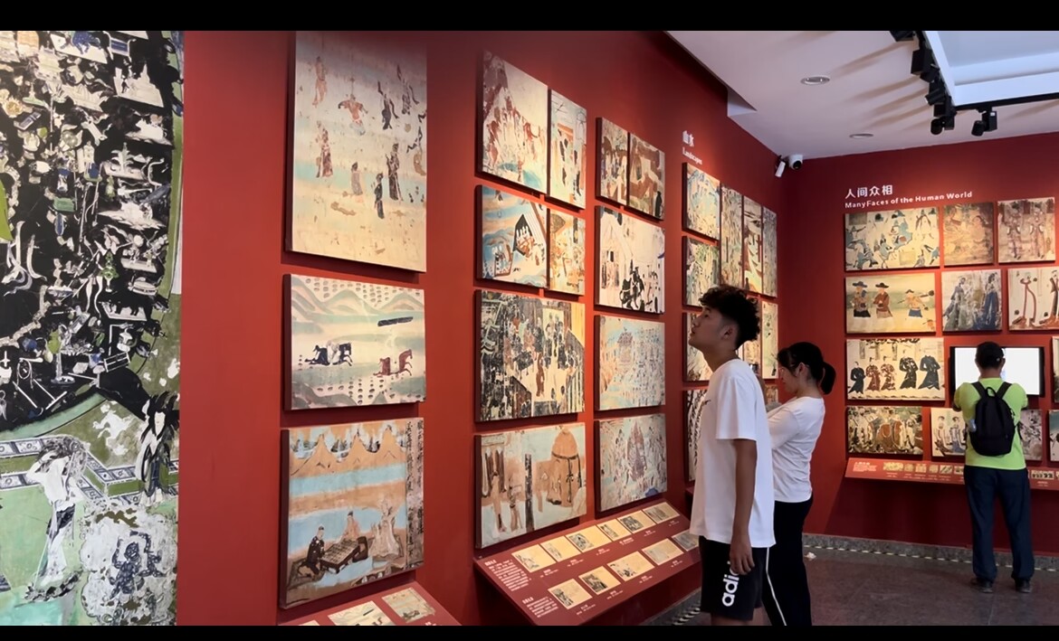 敦煌文化以敦煌莫高窟考古探究、文化艺术、文献保存为核心。这些石窟内的壁画充分展现了敦煌文化的兼收并蓄。这些壁画的艺术手法通过各种途径影响了中国古代文人的艺术创作。在今天,敦煌莫高窟内丰富的壁画资源已经成为我们认识中国古代绘画史的重要依据,实践队员深感其重要的文化价值。