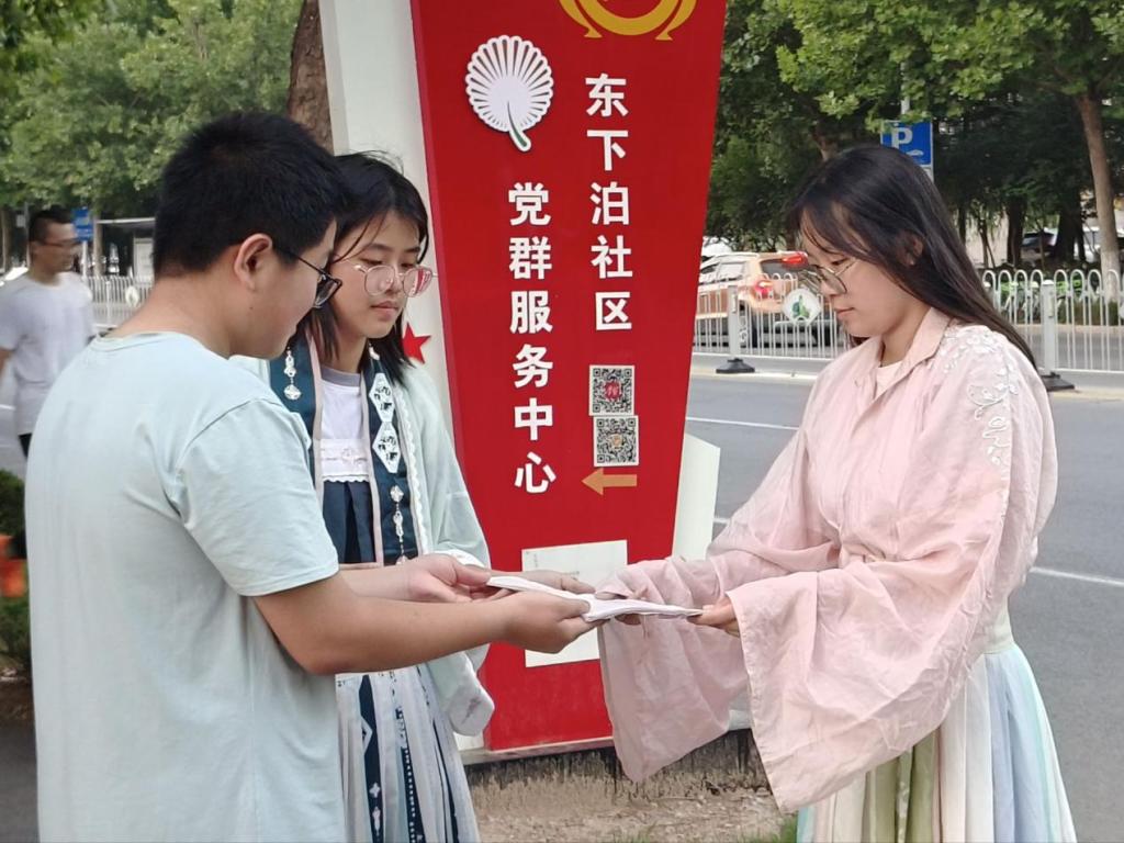 为了使家乡人民对于以儒家文化为代表的传统文化有更加全面的认知,实践队员决定采用多种方式向人们展示传统文化沿革,增进文化认同。为此,7月17日下午,实践队队员们在集市、公园、广场分发宣传页,向市民讲解学习儒家传统文化的重要性,邀请市民填写知识调查问卷,主要围绕着传统文化传承等问题展开采访。采访得到居民们的热情支持与配合,队员们表达来意后,积极配合队友们的调查,一位老人说“这几年来孩子们在学校学习传统文化的课程开设得越来越多,这是党和国家重视,更是人们心中热爱传统文化。”这是群众对学习传统文化备受重视的所见所闻,更是传统文化传承的重大成果。