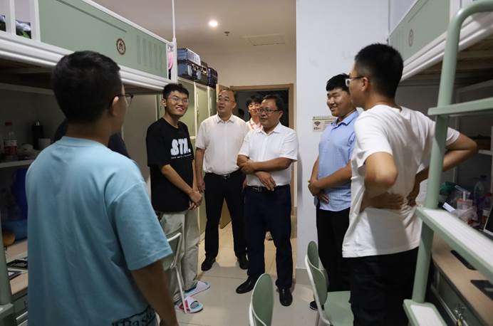 老师们走进新生宿舍,首先表达了对新生们的热烈欢迎,并与新生们进行了亲切的交流,询问他们到校后的感受。同时,王建阳鼓励新生们积极适应新环境,关心新生入住后所遇到的各种问题并进行了及时的沟通,并勉励新生,希望他们在大学四年中认真学习,不断提升自己。新生们也对老师的到来表示欢迎,积极与老师们进行互动交流。