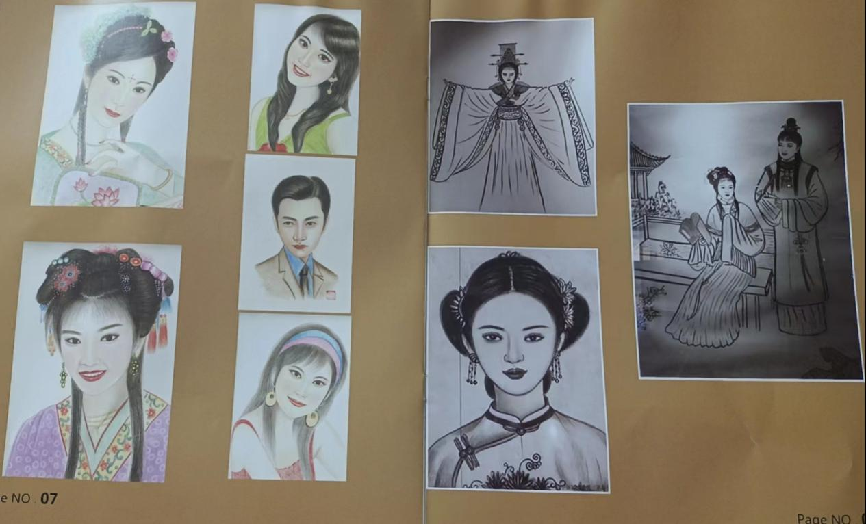 实践队员了解到,火棍画主要以传统题材为主,包括历史人物、英雄故事等,这也是以画的形式传承中华优秀传统文化的好方式,用画讲述中国历史故事,传承历史精神。丁春梅师傅的代表作主要有《华堂锦绣》《四大美女》《梁祝》《喜上眉梢》,这些作品都极好地展现了中华优秀传统文化之美。非遗火棍画目前主要以中国历史故事与传统文化为题材,其中丁春梅师傅以画中国古代美人而出名,她将中国古代女人的古风之美展现地淋漓尽致,让我们对中国古代人物形象有了更加深刻的印象。