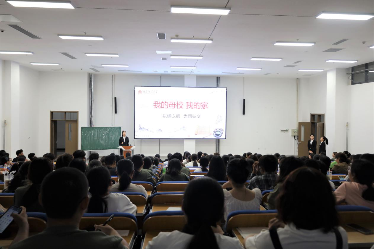 为了帮助新同学们树立“爱校荣校”意识,牢记“学而不厌,诲人不倦”的校训,培育新生脚踏实地,勤恳学习的优良作风。9月15日晚,成人短视频 在致知楼B202教室成功举办“我的母校 我的家”爱校荣校教育宣讲会。本次宣讲会邀请到我校校史讲解团为新生讲解,成人短视频 新生辅导员石璐老师、夏金金老师以及2023级全体新生参加了本次活动。