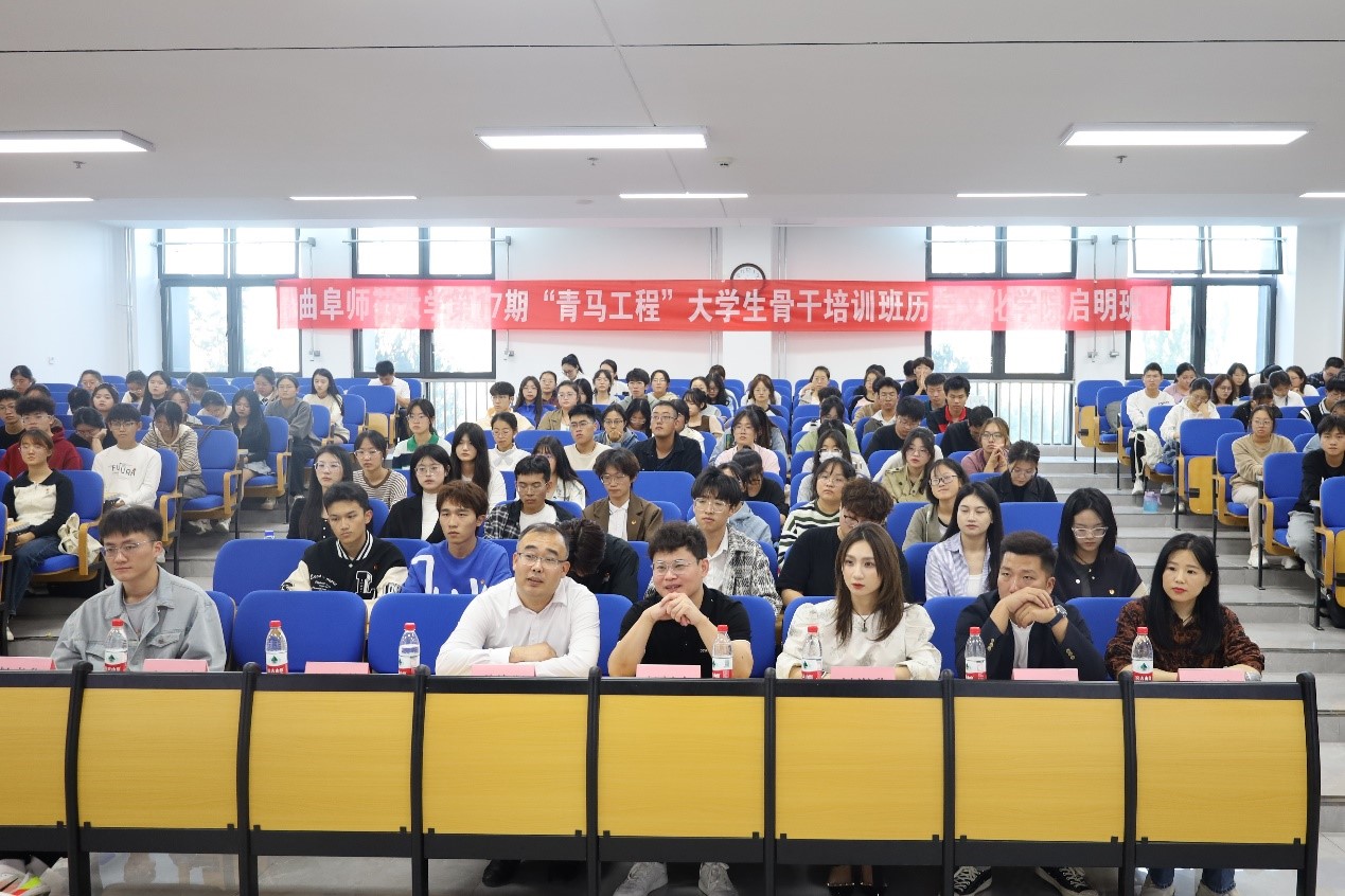 11月1日,成人短视频 于致知楼B101教室举行2023—2024学年“青马工程”培训班暨第33期团校开班仪式。成人短视频 党委副书记王建阳,优秀校友、稼轩文学院执行院长赵怀宝,团委书记刘贤贤以及各年级辅导员出席仪式。成人短视频 学团干部、2023级学生骨干参加仪式。本次仪式由刘贤贤老师主持。