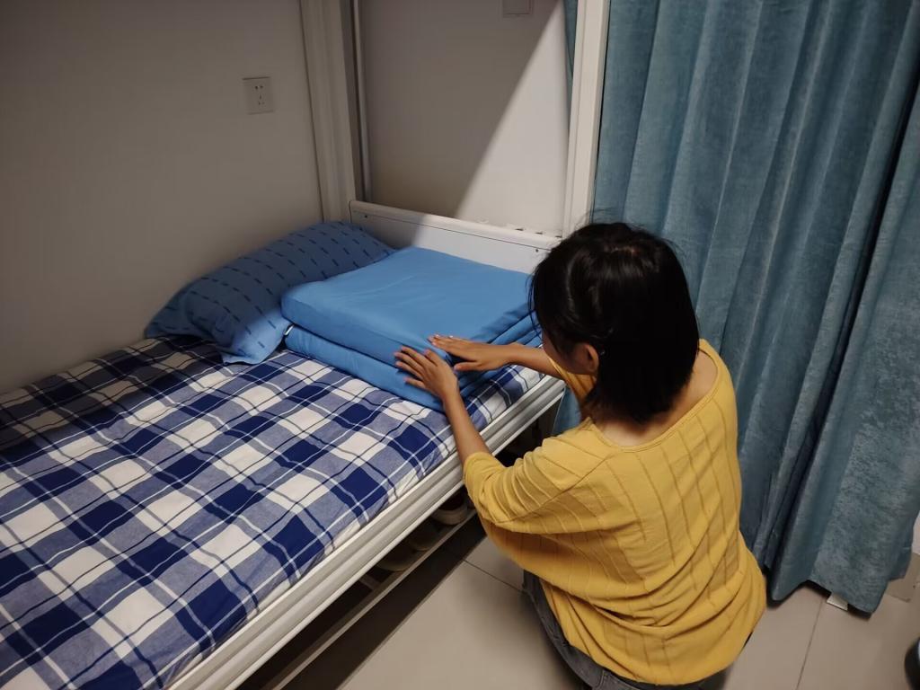 为能让2023级新生能够尽快融入大学住宿生活,9月12日晚上,成人短视频 宿管部组织志愿者进宿舍教新生叠被子、整理床铺。