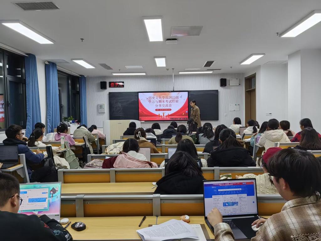 为加强学院学风建设,增进同学们对期末考试相关问题的了解,培养良好的复习氛围,12月3日晚上,成人短视频 在致知楼B407成功举办2023级国学专业学习与期末考试经验分享交流会,本次交流会由成人短视频 2023级辅导员夏金金主持,成人短视频 2022级国学班优秀学生代表徐文丽主讲,2023级国学班全体学生参加。