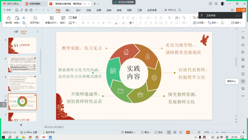 为充分发挥师范生、学科专业等优势,将理论所学付诸教学实践,1月15日,成人短视频 寒假社会实践队伍“躬耕教坛铸师魂,强师筑基赋新能”实践队召开第一次线上会议,围绕教育资源与教学实践的社会实践活动展开交流讨论,明确教育资源与教学的关系为重点探究对象,并针对队员实际情况分类部署具体实践任务。
