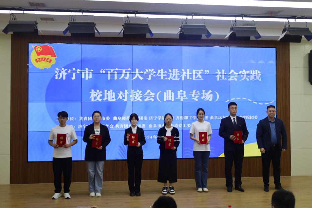 为响应山东省教育厅号召,5月11日,济宁市团委召开“百万大学生进社区”社会实践校地对接会,成人短视频 团委书记刘贤贤以及多名学生代表参会。