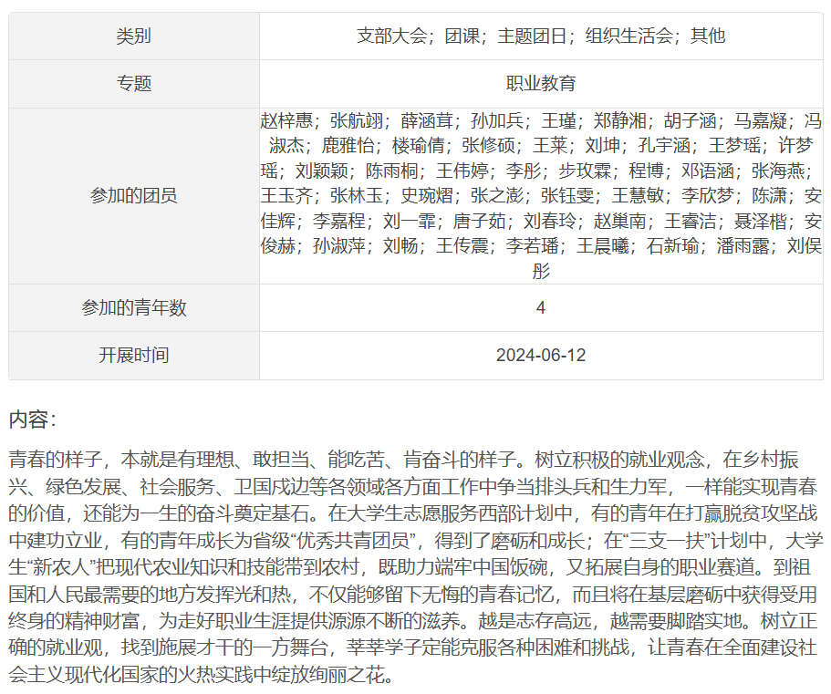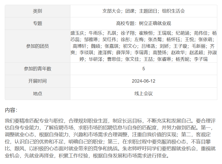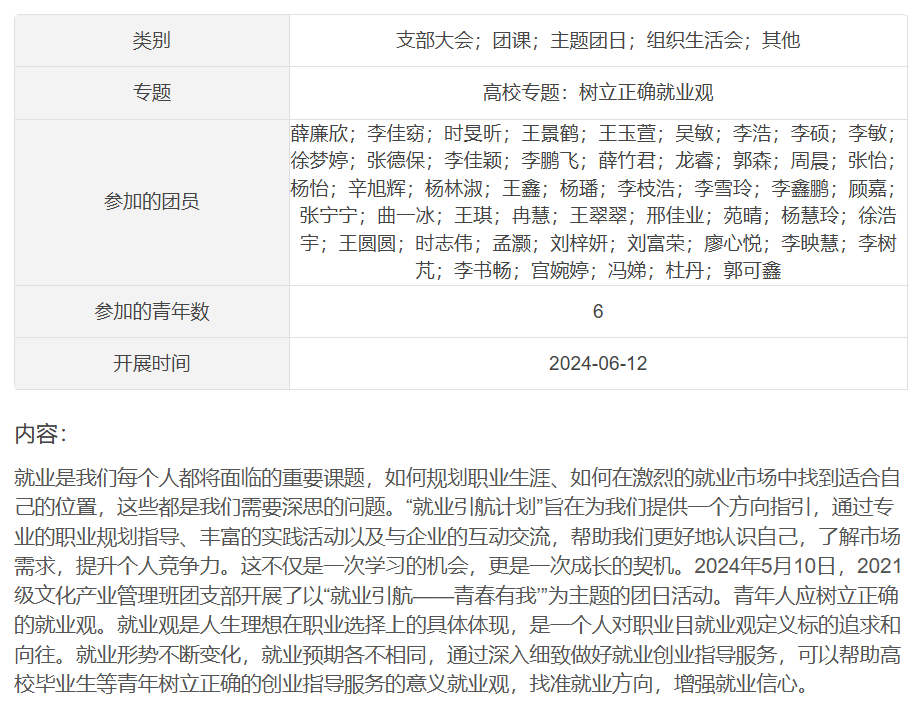 为引导大学生立足实际、找准定位,树立理性、平实的择业观、就业观,6月12日,成人短视频 组织2021级本科生以团支部为单位开展就业引航主题团日活动。