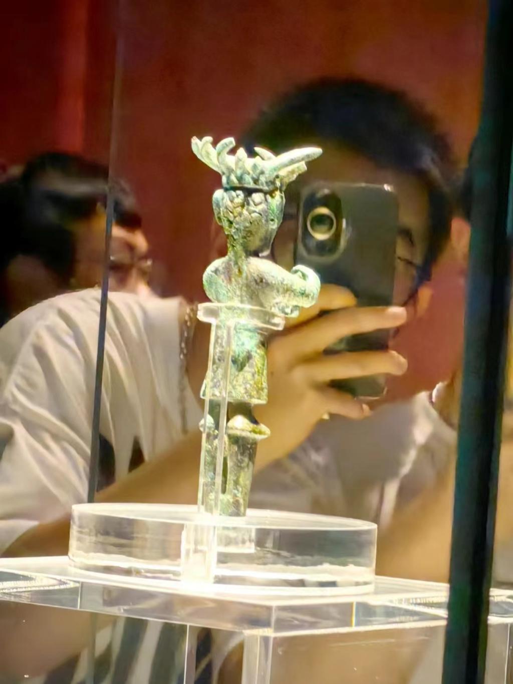 为了让实践队员们更加深入地了解古蜀文明,博物馆还设置了丰富的互动体验区域。在模拟考古现场,工作人员先为实践队员们详细介绍了模拟考古的流程和注意事项。随后,实践队员们分组进入模拟场地。他们先用小铲子轻轻地铲去表层的土壤,然后用刷子小心翼翼地清扫,生怕损坏可能隐藏其中的“文物”。当有实践队员发现“疑似文物”时,大家都围拢过来,共同观察、探讨。有的队员用小竹签谨小慎微地清理周边的泥土,有的队员则对照着考古手册进行初步判断。经过一番努力,一件件“文物模型”逐渐展现在大家眼前,有“仿制的玉器”“小型的陶器”等等。实践队员们在感受其中艰辛与乐趣的同时,脸上洋溢着兴奋与自豪的神情。在多媒体展示区,通过虚拟现实技术,实践队员仿佛穿越时空,置身于古蜀王国的繁华街市,沉浸式体验了金沙时期生态环境和生产场景。这里不仅采用先进技艺保留和展示这些文物,更是利用场景复原、多媒体展示、互动体验高科技手段交流传承古蜀文明。