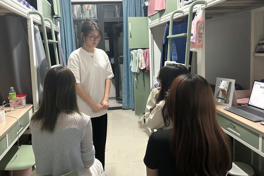 部门志愿者来到了多个寝室,询问了学生们当前对寝室的感受以及可能出现的寝室问题。学生们表示相处的非常好,整个交流氛围十分融洽。对于新校区寝室的环境与设施,学生们表示十分满意。志愿者表示,如果有何寝室问题都可向志愿者提出,他们将尽的最大的努力来帮助同学们。