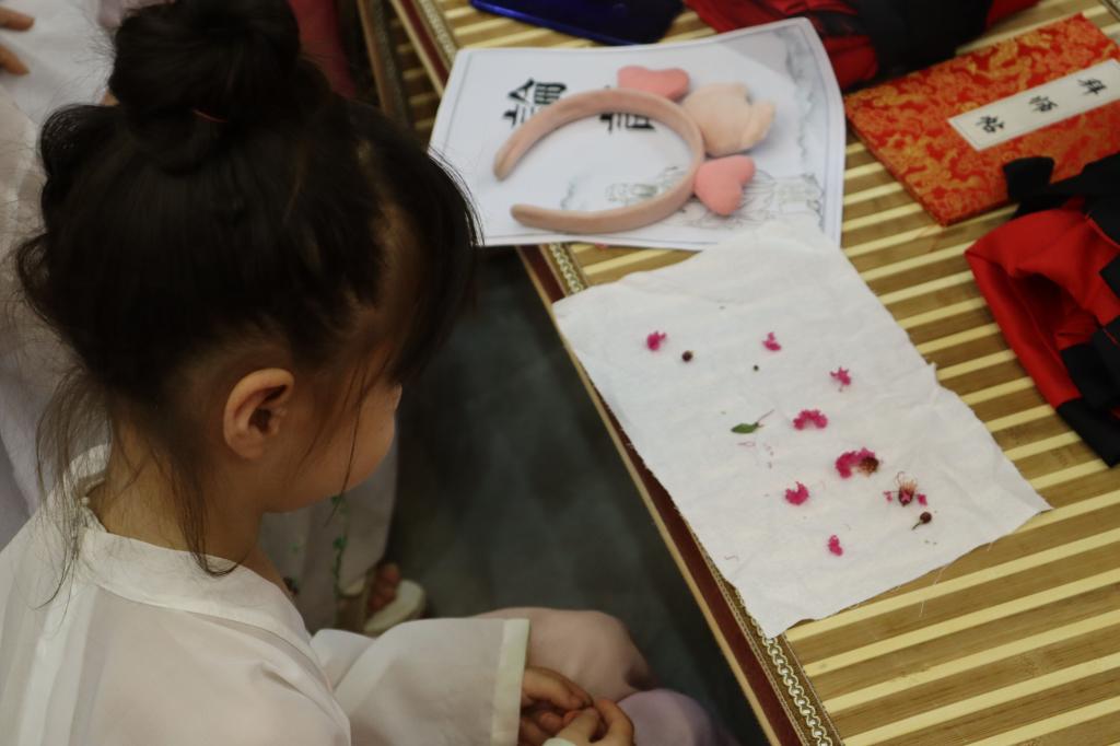 活动末尾,实践队还带领孩子们进行了许多有趣的活动,把鲜花通过干燥处理,制成干花,用于装饰或制作手工艺品,如干花花束、干花相框等。利用鲜花的天然色素,在布料上印染出独特的花纹和图案,进行鲜花印染,品尝各种用鲜花制成的花茶,如菊花茶、玫瑰花茶等,同时了解花茶的功效和文化,以花为主题进行绘画创作,可以是写生,也可以是想象创作,通过说出花的名字进行接龙比赛,进行花艺创作比赛,展示创意和技巧等。