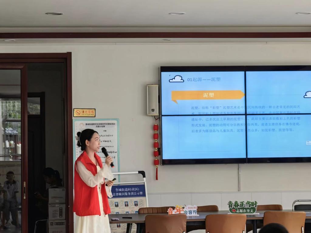 活动的前半段,志愿者们聚焦于中国传统手工艺术——绘画与泥塑。志愿者队员首先向孩子们介绍了中国绘画的悠久历史和独特特点,从古代的壁画、水墨画,到现代的工笔画、写意画,一幅幅生动的画面仿佛历史的画卷在他们眼前徐徐展开,让他们深刻体会到中国绘画的源远流长和独特魅力。志愿者详细讲解不同历史时期的绘画风格和特点,如唐代的繁华、宋代的雅致、元代的苍茫等,让孩子们了解中国绘画是如何与时代变迁相互交织、共同发展的。同时,他们也引导小朋友们欣赏中国绘画的技法之美,向他们展示各种笔墨技法,如皴法、点苔法等,让他们了解这些技法是如何在画家们的巧手下,幻化出千姿百态的山水、花鸟、人物等形象的。紧接着,志愿者们又引领孩子们走进了泥塑艺术的殿堂。他们详细讲解了泥塑的制作过程,从简单的泥球、泥条到复杂的泥塑作品,如生动的小动物、有趣的人物形象或是富有创意的抽象雕塑,让孩子们看到泥塑艺术的广阔天地和无限想象。志愿者一边展示一边讲解,孩子们听得津津有味,对泥塑艺术产生了浓厚的兴趣。