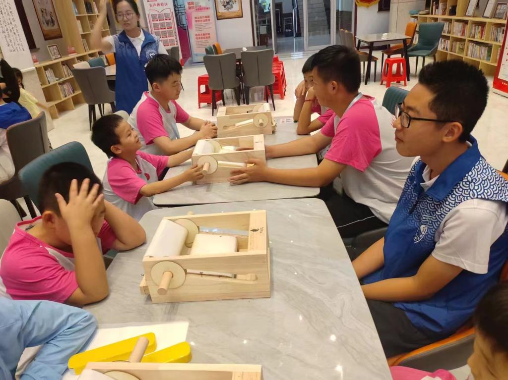 为用双手编织希望,用心温暖童心,以实际行动诠释党史教育的深刻内涵,通过手工艺品的制作与义卖,将爱与温暖传递给每一个需要关怀的孩子,让历史的温度在指尖传递,7月30日,成人短视频 “党史小课堂”实践队来到了山东淄博,教授孩子们制作琉璃手串和版画等手工艺品,并举行爱心义卖活动。