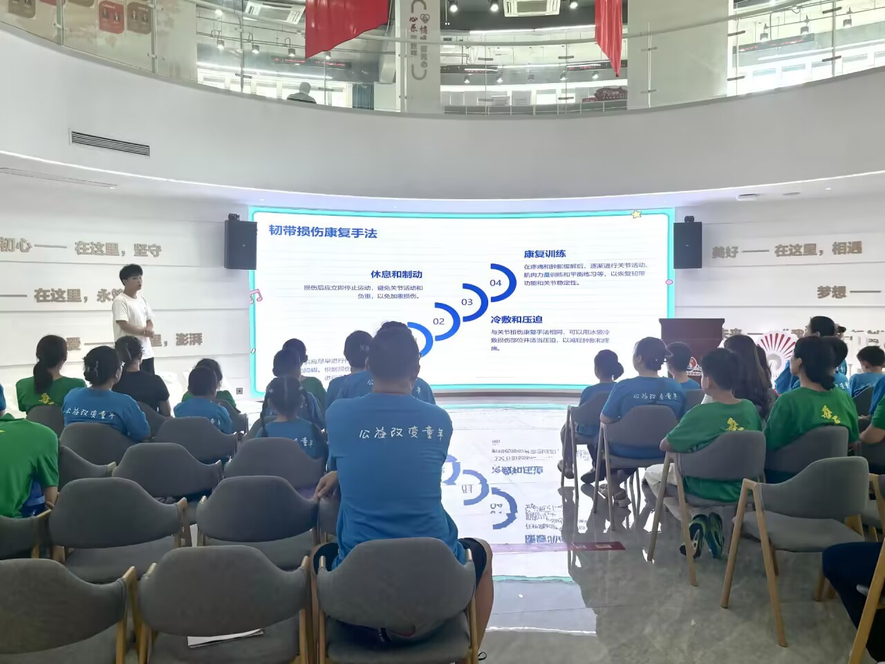 在这一环节,实践队员们不仅深入浅出地讲解了肌肉拉伤和踝关节拉伤的原因、症状,还着重强调了预防的重要性。从充分的热身准备到正确的运动姿势,从适度的运动强度到合理的休息恢复,每一个细节都犹如一颗种子,播撒在孩子们的心中,期待着在未来的运动生涯中生根发芽,绽放出健康之花。