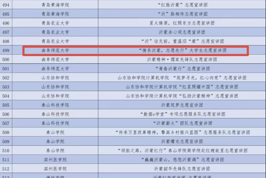 “情系沂蒙,志愿先行”大学生志愿宣讲团以深入传承沂蒙精神为目标,组织团队进入校园,社区、企业、机关等多个场所,采取知识问答、演讲、话剧等方式开展宣讲。帮助群众增进对沂蒙精神的认识,鼓舞更多的青年志愿者以实际行动投身到沂蒙精神宣传中来,以实际行动践行沂蒙精神,让沂蒙精神得以更好地传承。“忆星娄关,黔程似锦”志愿宣讲团紧密围绕遵义会议精神的核心要义,结合新时代背景和社会热点问题,制定相应的宣讲主题,并充分利用新媒体平台和技术手段进行宣讲,让遵义精神适应当今时代,在新时代得以更好传承。帮助群众了解遵义精神的内涵,让遵义精神得以广泛传播,使红色精神深入人心。