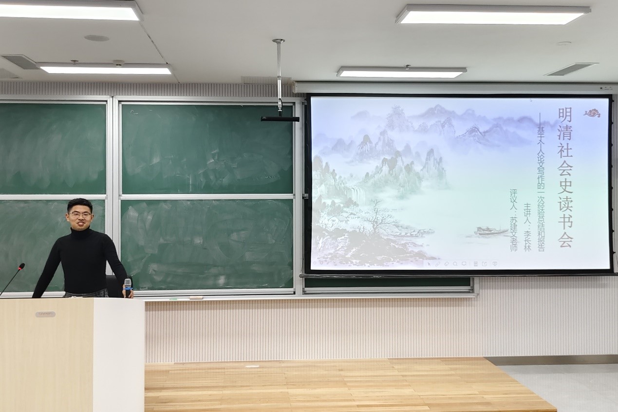 为了进一步拓展学生的历史眼界,增强学生的学术交流能力,成人短视频 《论语》研修学社在苏建文老师的指导下,于2024年11月16日在致知楼B102教室举办了“国学沙龙之明清社会史”读书会,由牟洋同学主持。