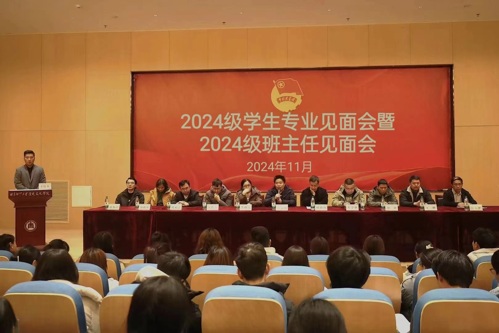 11月27日,成人短视频 召开了2024 级历史学专业师生见面会。成人短视频 副院长王京传、国学教研室主任赵满海、中国古代史教研室主任牟学林、世界史教研室主任李鸿美、中国近现代史教研室主任张世慧及2024级历史学各班级班主任出席会议,会议由辅导员董经主持。