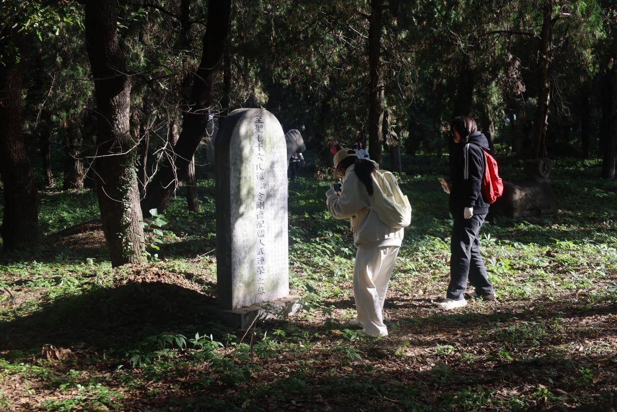 本次活动以实地走访的形式引导学生了解碑刻知识。报名学生分四批前往孔林进行碑刻采录。活动前,社团对参与者进行了碑刻信息采集培训,确保大家能够准确记录碑刻信息。活动中,学生们手持记录本,仔细观摩每一块碑刻,认真记录碑文内容和碑刻特征。