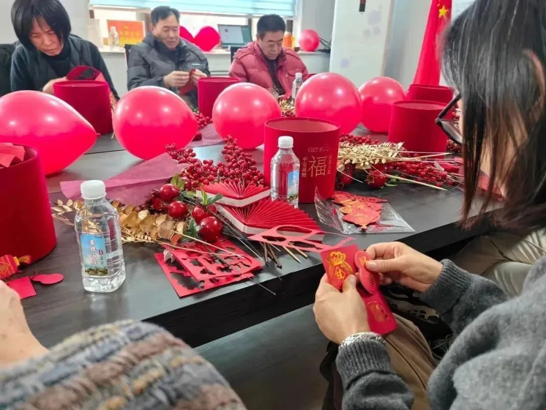 在制作过程中,居民们相互交流心得,分享制作技巧,彼此之间的友谊在欢声笑语中不断加深。有的居民还特意邀请家人一起参与制作,共同享受这份难得的亲子时光。一位年轻妈妈带着女儿一起制作抱抱桶,她一边耐心地指导女儿粘贴彩纸,一边讲述着关于新春的故事和习俗。女儿听得津津有味,脸上洋溢着幸福的笑容。她说:“这次活动不仅让我们母女俩度过了一个愉快的下午,更让我对春节有了更深刻的认识和感受。” 经过一个多小时的努力,一个个充满创意和个性的抱抱桶终于诞生了。它们形态各异、色彩斑斓,有的像是盛开的花朵,有的像是活泼的小动物,还有的像是寓意吉祥的图案。居民们手捧着自己亲手制作的抱抱桶,脸上洋溢着自豪和喜悦的笑容。他们相互展示、相互欣赏,彼此之间的情谊在这一刻得到了升华。